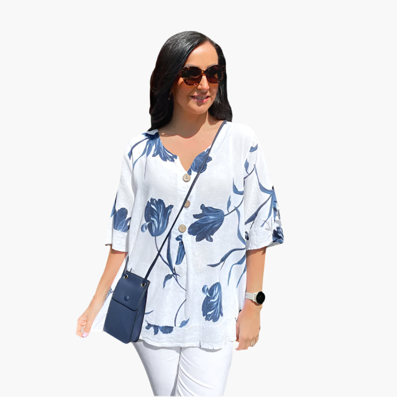Élevez votre style avec le Haut Alyssa Haut Ample à Col en V Aurielle™. Ce modèle allie confort et sophistication, parfait pour vos journées ensoleillées et vos soirées fraîches. Élégant sans effort et incroyablement agréable à porter, il devient l’ajout essentiel à votre garde-robe, apportant une touche de raffinement au quotidien.